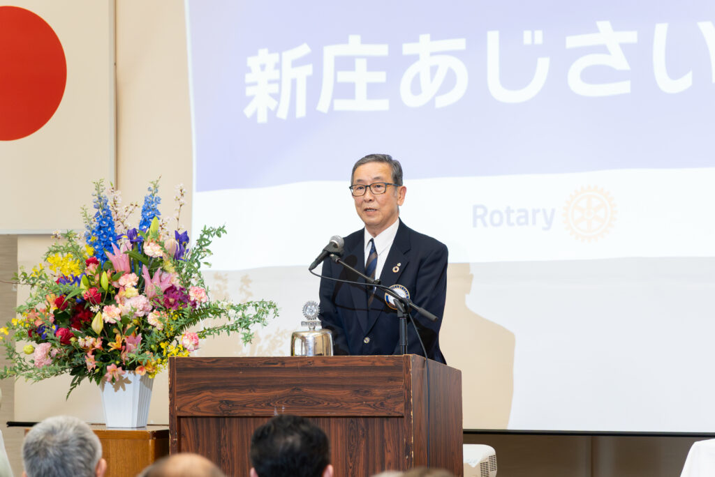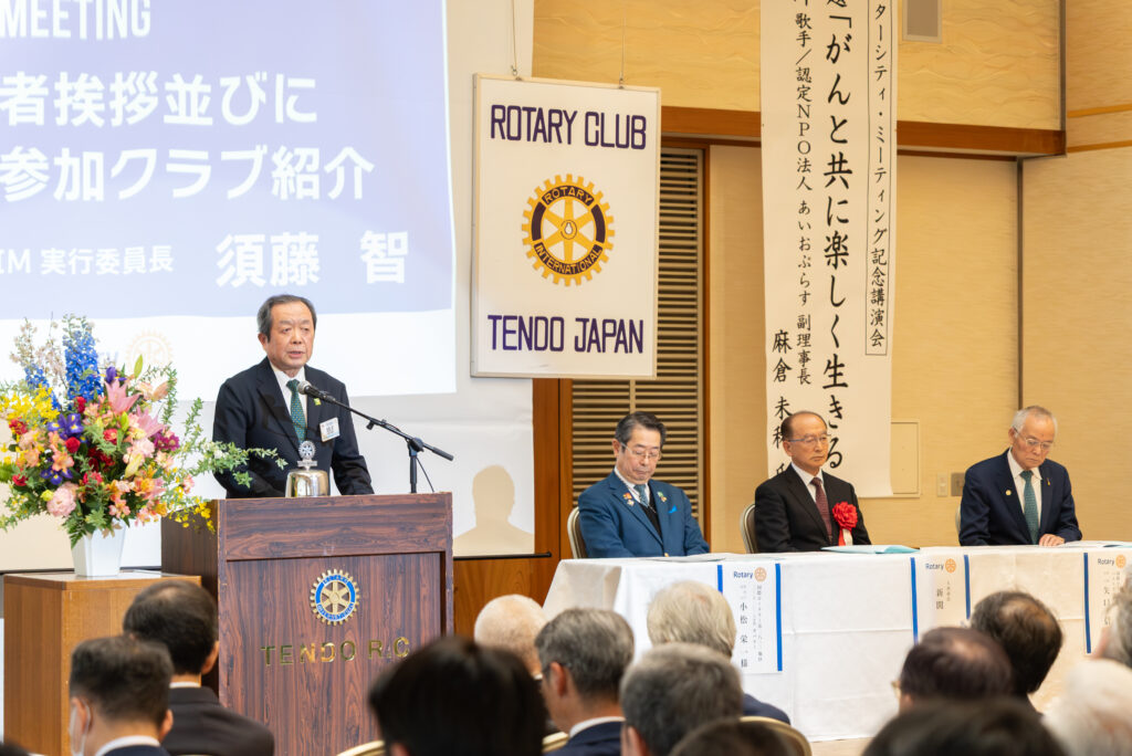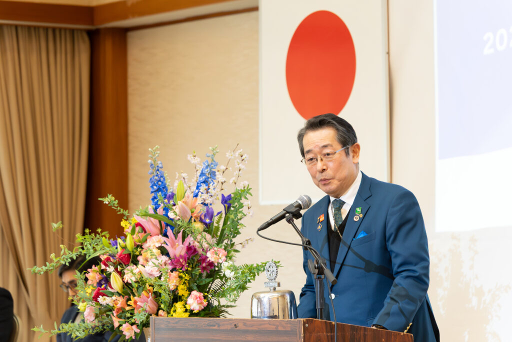 午後4時からの式典では、小松栄一ガバナー(寒河江ロータリークラブ)のガバナー挨拶、天童市長・新関茂様からの来賓祝辞が行われました。また、次期開催クラブとして新庄あじさいロータリークラブが紹介されました。