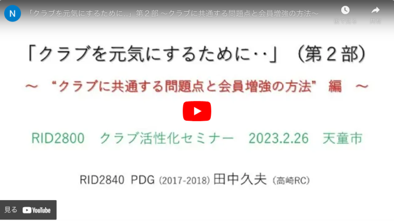 2023.2.26公演「クラブを元気にするために…」第一部〜ロータリーの魅力と例会の重要性(退会防止)〜