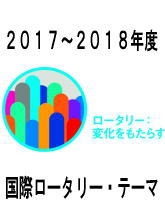 2017-18年度、「ロータリーとは何ですか?」という問いに、私たちは「ロータリー:変化をもたらす」というテー マで答えます。それぞれどのような方法で奉仕することを選んだとしても、その理由は、奉仕を通じて人びとの人生に変化をもたらせると信じているからです。新しい 遊び場や学校をつくる、医療や衛生設備を改善する、紛争仲裁者や助産師を研修するなど、私たちはその活動が、人数が多かろうが少なかろうが、誰かの人生をより良くしているのだと知っています。ロータリー入会のきっかけが何であれ、私たちがロータリーにとどまり続けるのは、ロータリーで充実感を得ることができるからです。この充実感は、毎週、毎年、「変化をもたらす」ロータリーの一員であることから湧き出てくるものなのです。